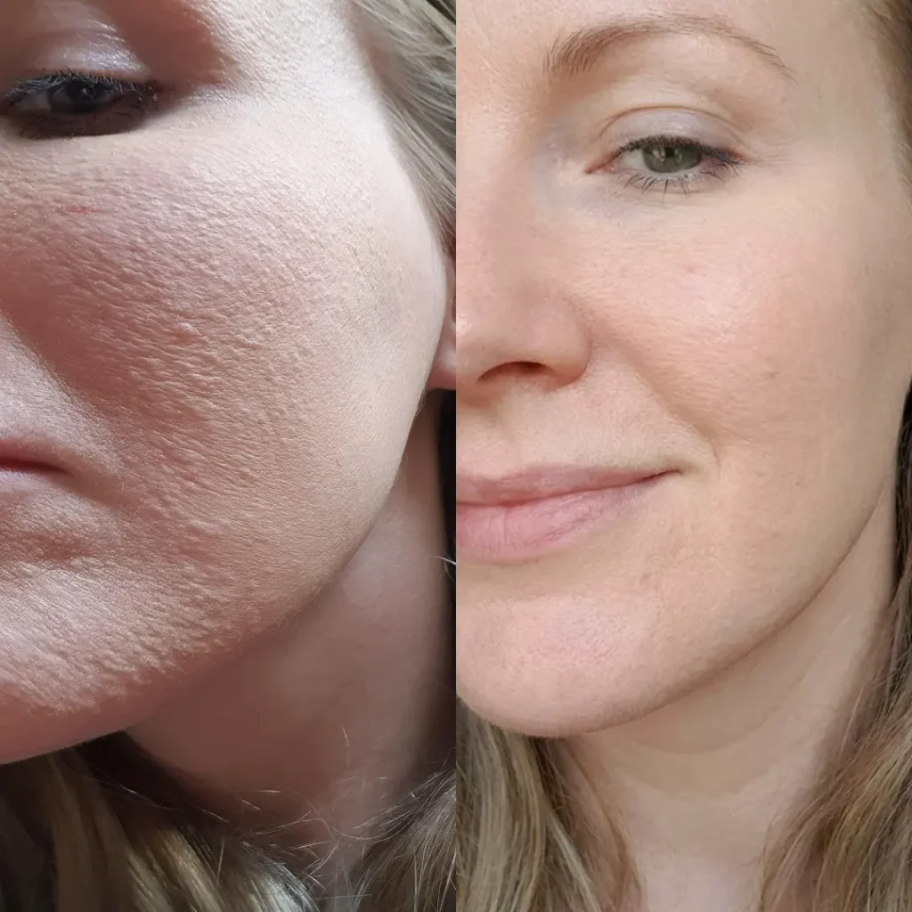 “My skin texture went from rough and dull to smooth and glowing. Foundation glides on now instead of catching on dry patches.” – Michelle, 44